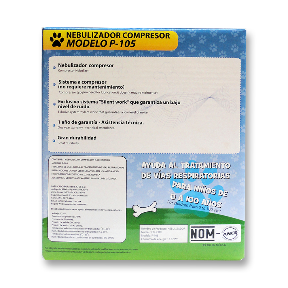 Nebulizador de pistón, auto lubricado, de alta potencia. No necesita mantenimiento.